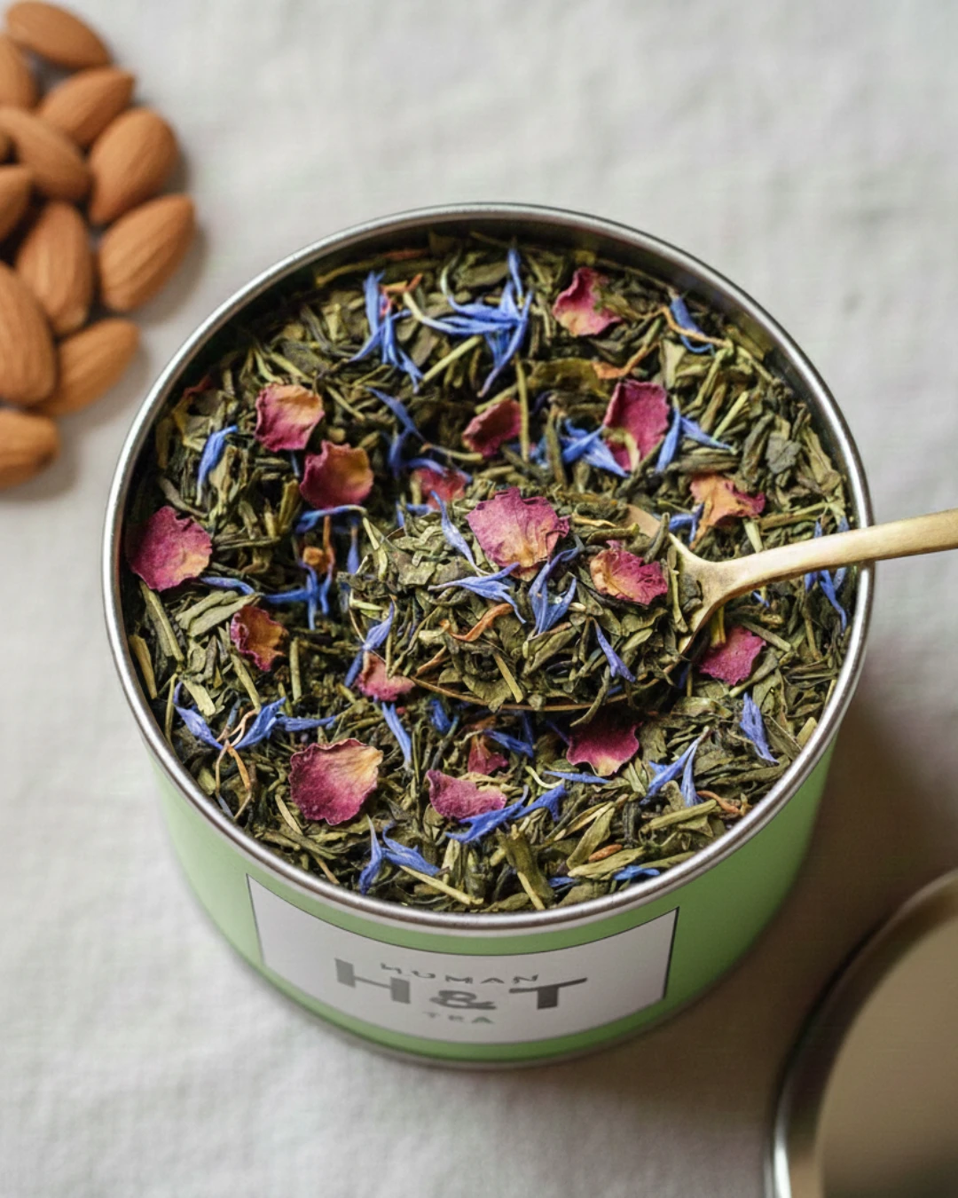 Très bel assemblage de thé vert, coco, amandes et pétales de rose pour une tasse délicieusement gourmande et raffinée.