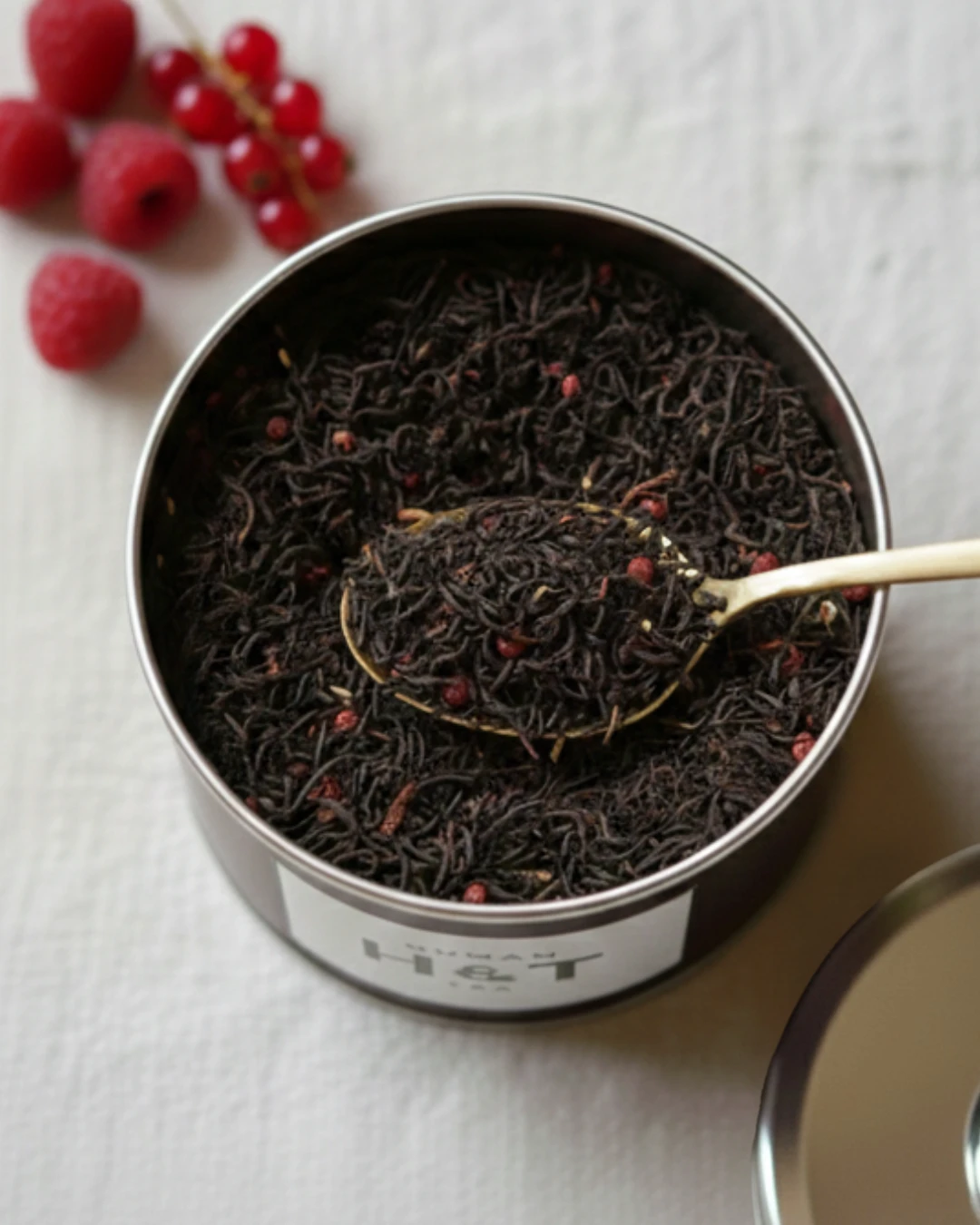 Thé noir*, groseille, framboises, fraises, arôme naturel