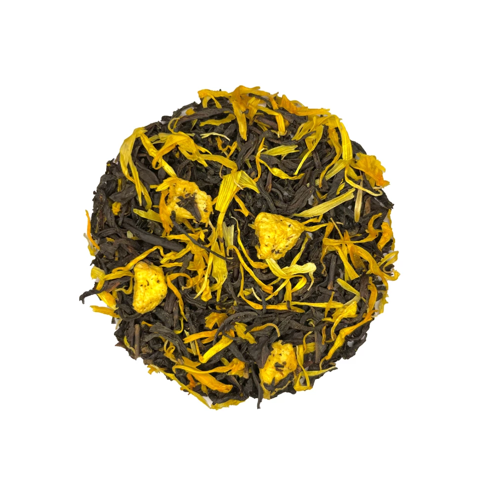 Thé noir*, pêche*, arôme naturel, fleurs*