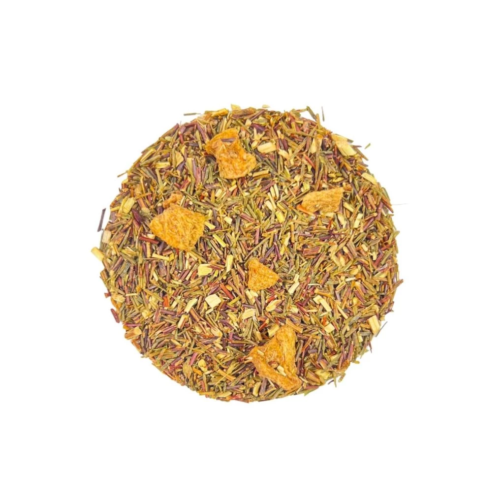 Le rooibos ou Aspalathus Linearis est ce qu’on appelle un thé rouge en raison du buisson rouge (“rooibos” en afrikaans) dont il est issu. Le rooibos vert à l’instar du thé vert est non oxydé et offre ainsi une tasse plus fraîche que son homologue rooibos rouge oxydé.
