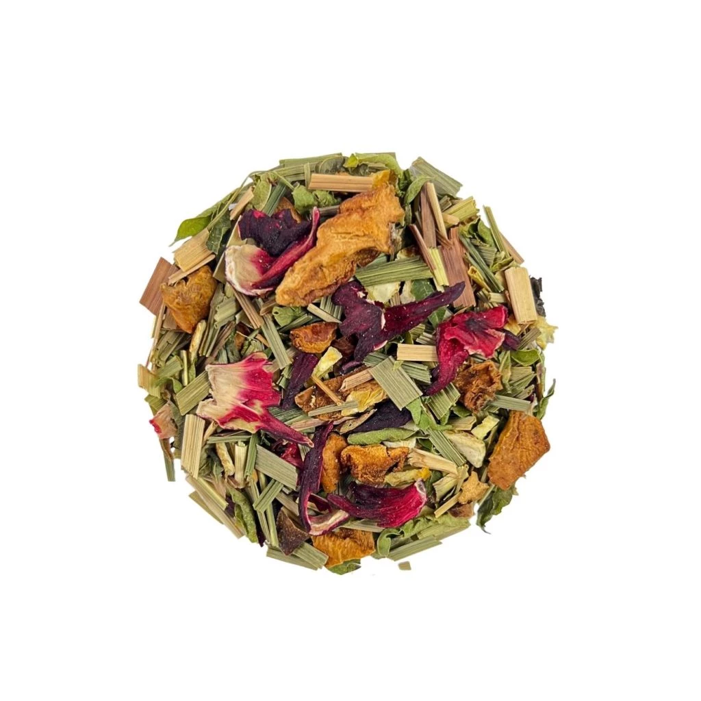 Citronnelle*,pomme*, hibiscus*, écorces d'oranges*, verveine citron*, arôme naturel.