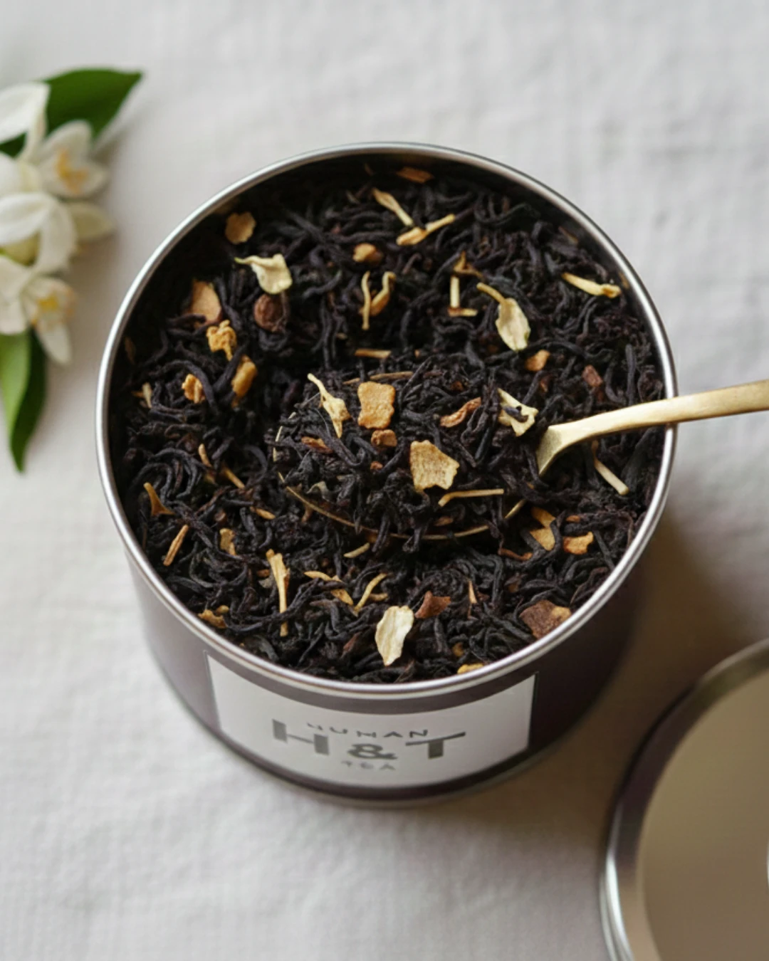 Thé noir*, écorces d‘orange*, arôme naturel, fleurs*
