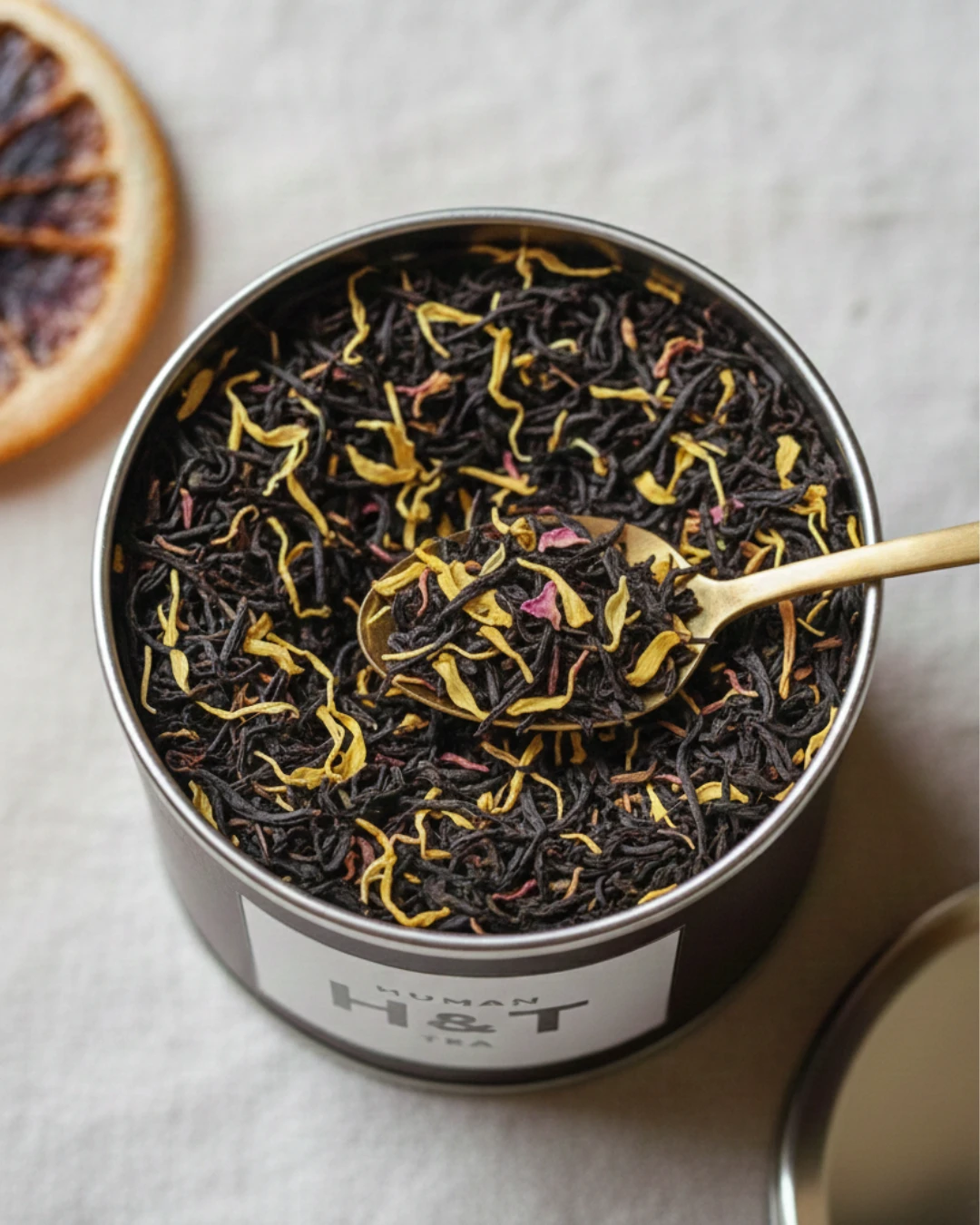 Savoureux thé noir bio aux écorces d’orange sanguine, délicieusement tonique.